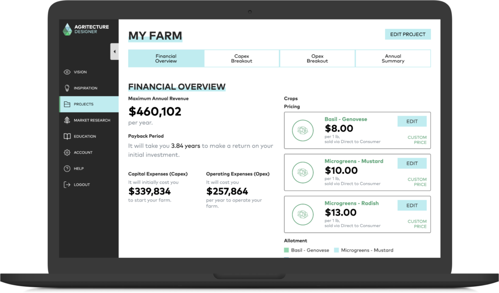 AGT: There is zero barrier to begin with Agritecture Designer. Even if you’re not able to spend a dime yet, you can utilize our 1st step and lay out a concrete Vision for your future farm. Just head to design.agritecture.com to get started! And for anyone else who’s just interested in urban agriculture but maybe not yet ready to get into the financials of a specific project, our Commercial Urban Farming Course, at $99, is an excellent low-cost and high-value next step.